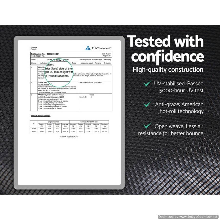 With 64-piece triple rate springs, UV-tested quality, and a sturdy construction, our trampoline is designed for hours of fun in the sun. Order yours today and watch as your kids jump, play, and stay active outdoors.