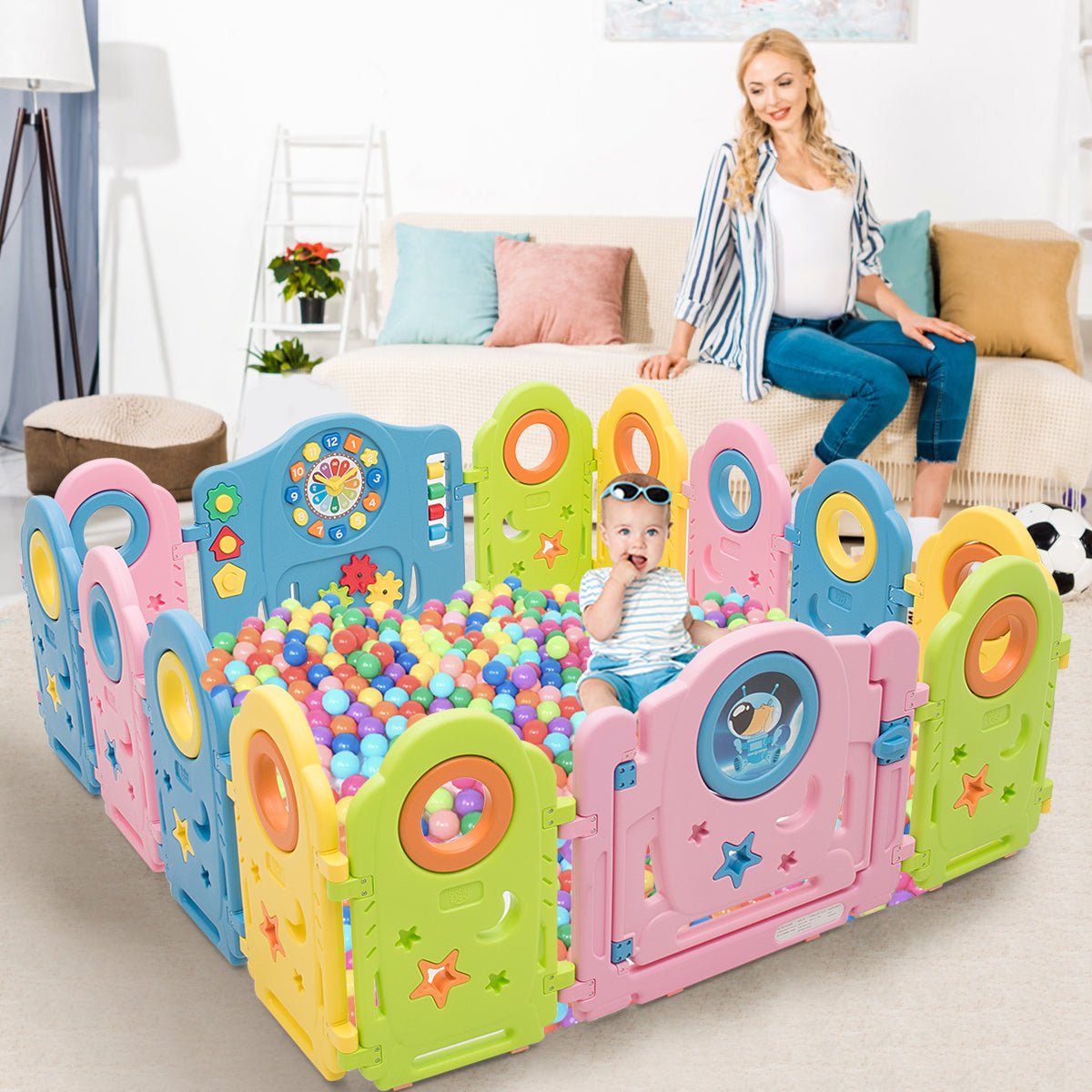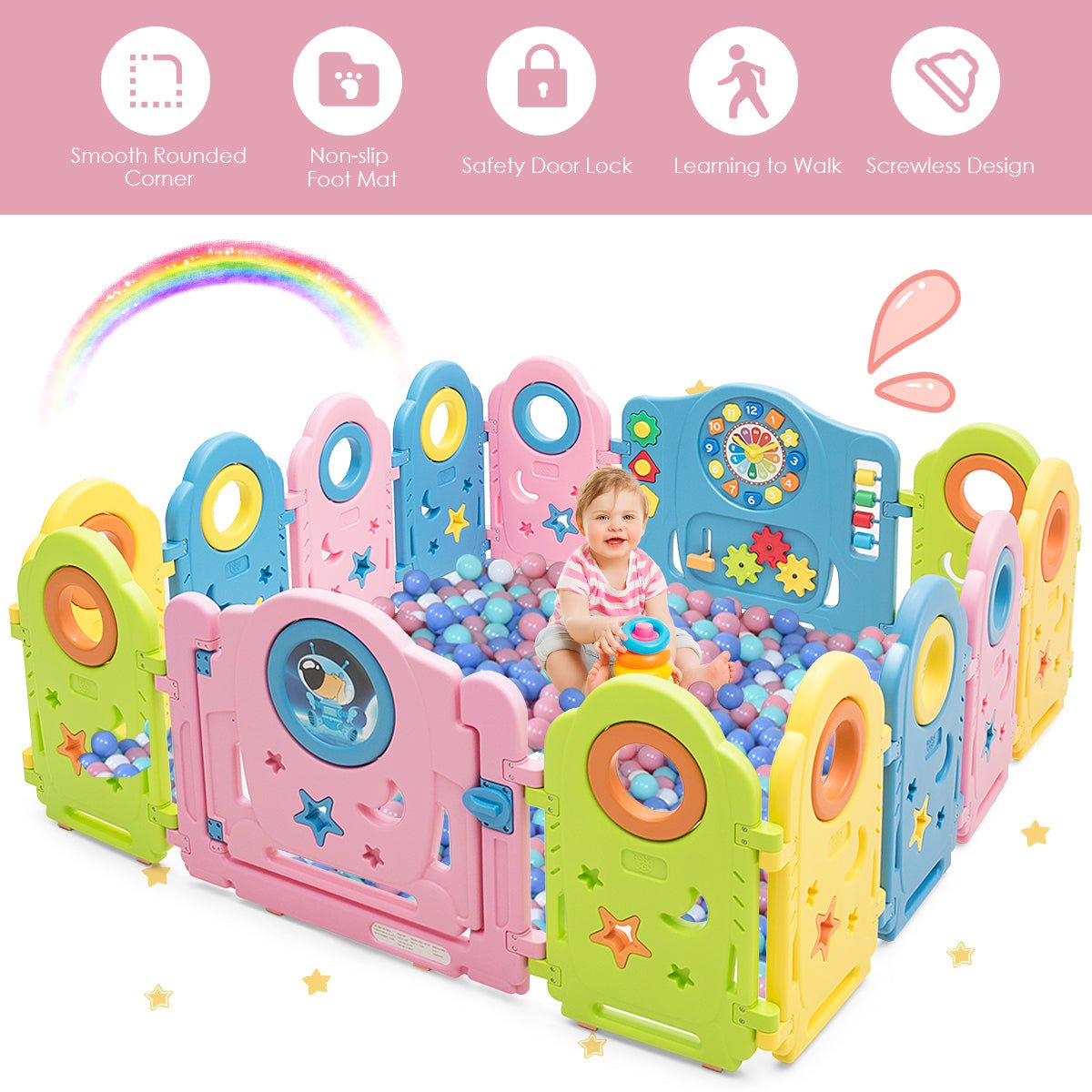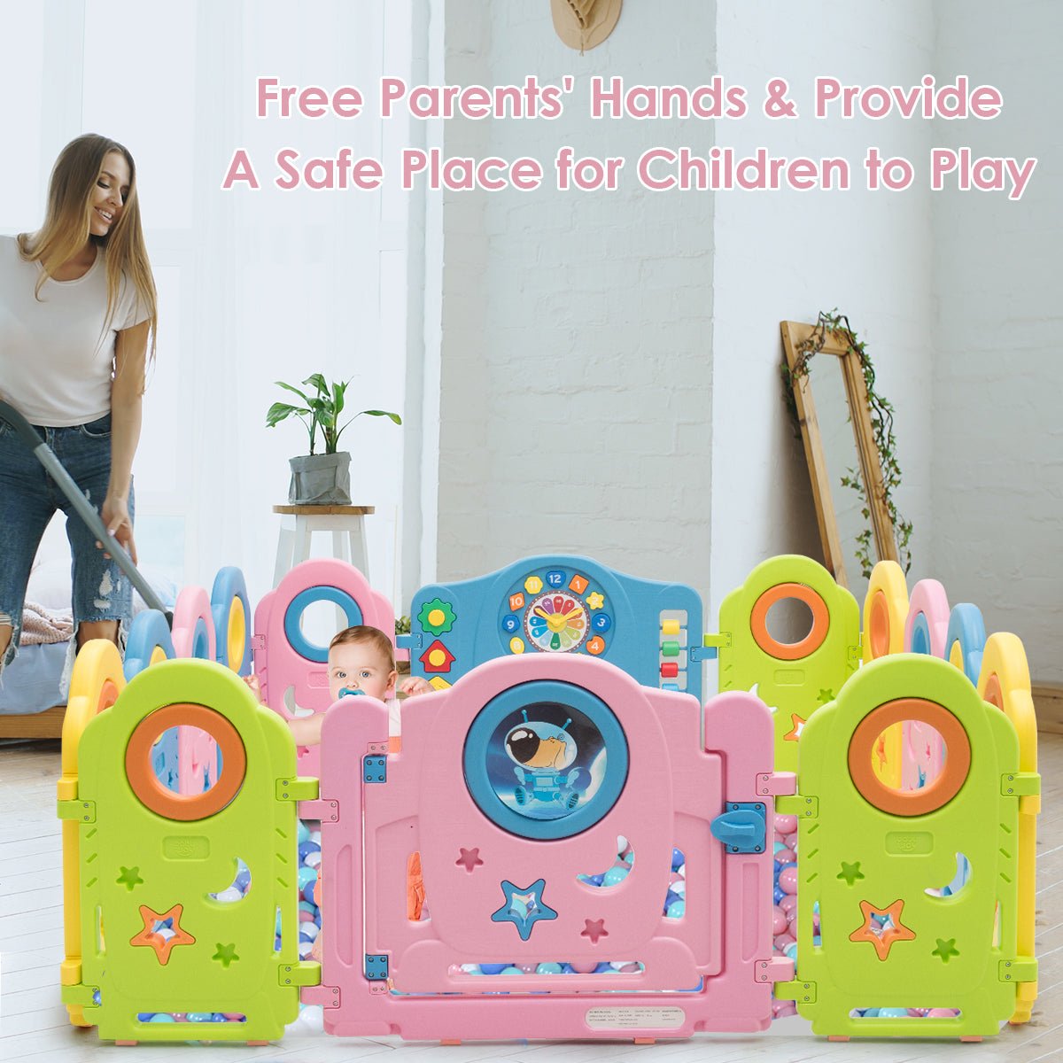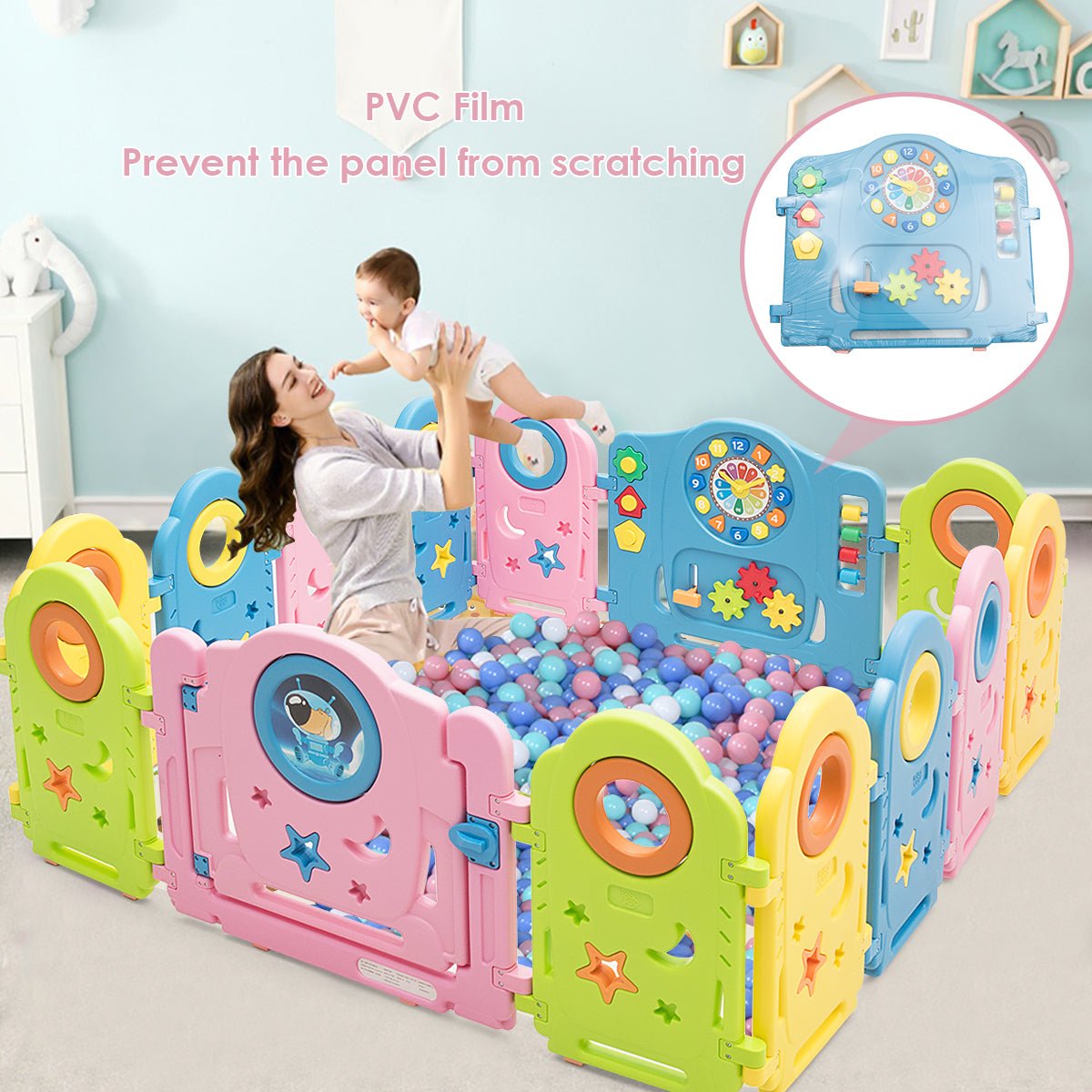 Colorful 14 panel Baby Playpen with Safety Lock & Educational Toys
