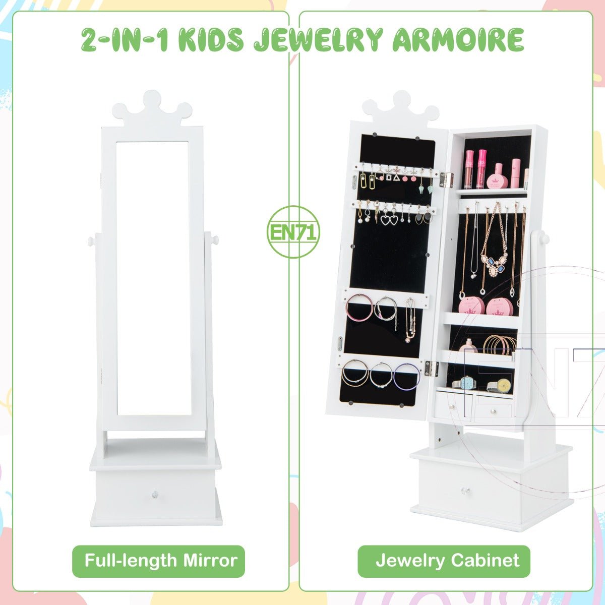 Kids Princess Jewelry Armoire with Full-Length Mirror
