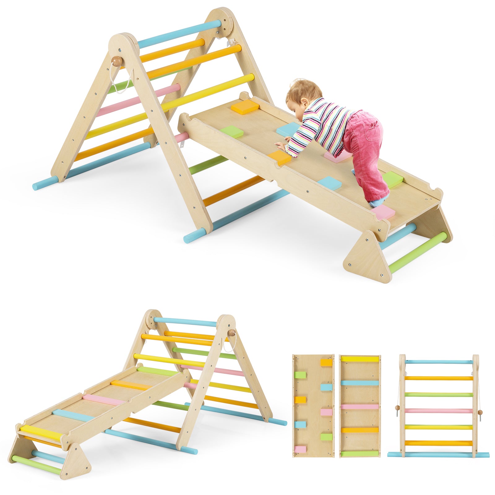 Colorful 3-in-1 Pikler Triangle Set | Dual Ramp Adjustable