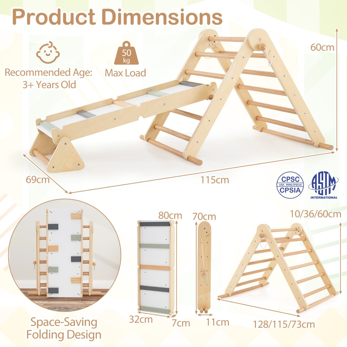 3 In 1 Pikler Triangle | Adjustable Natural Wood Climbing Set
