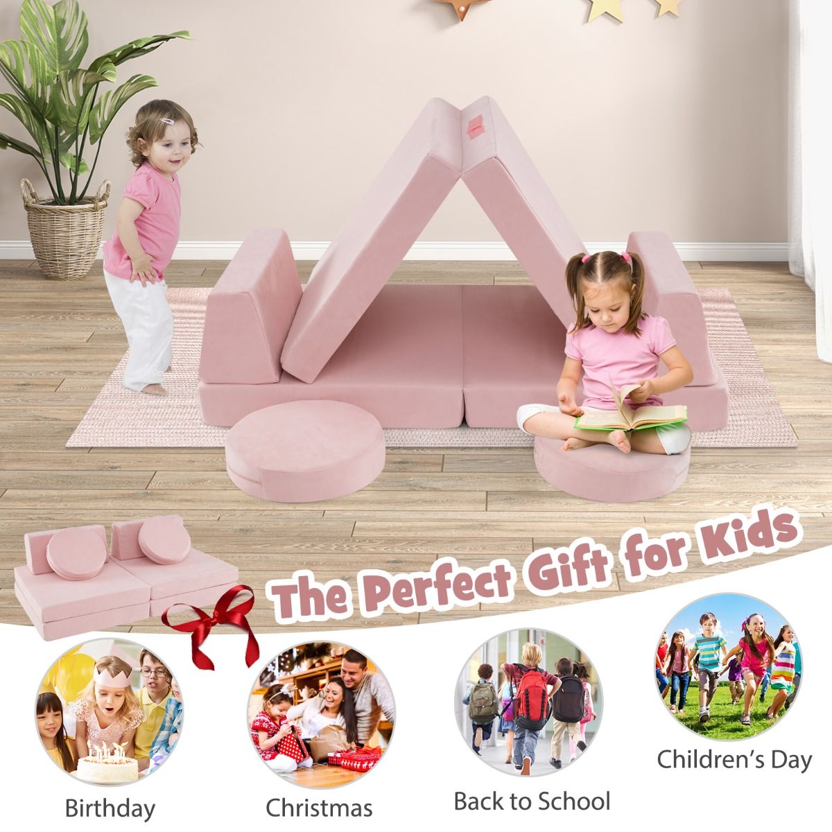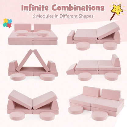 Modular 6 Piece Kids Play Couch Set | Pink Velvet Foam Blocks
