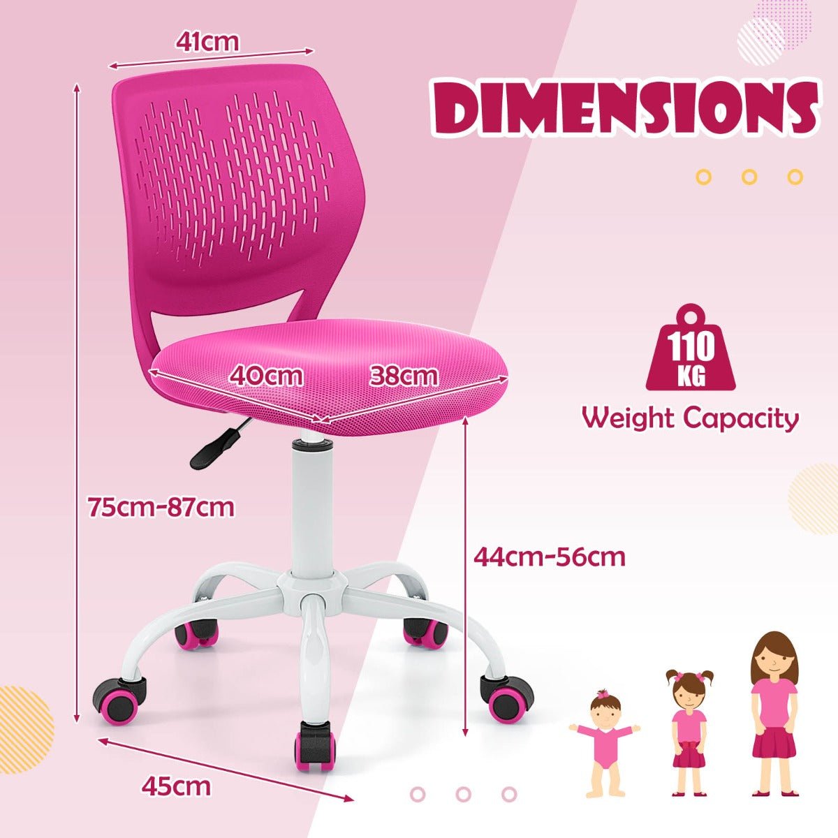 Pink Ergonomic Kids Desk Chair | Adjustable Study Seat