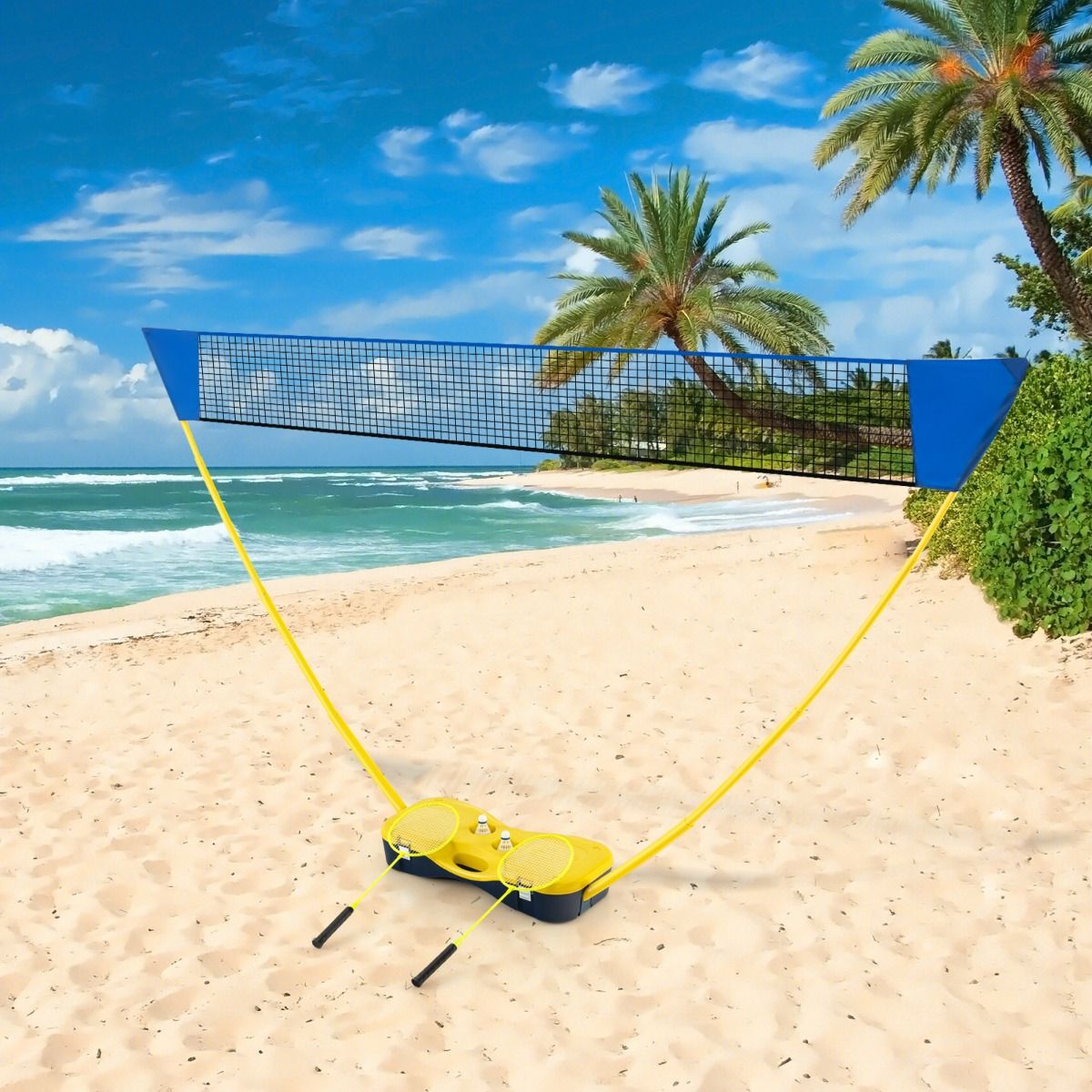 The Portable Badminton Net Set is an all-in-one blue and yellow kit that brings endless fun to your outdoor activities. This comprehensive set includes everything needed for an exciting badminton match, making it perfect for kids, families, and friends to enjoy together. With its portable design and easy setup, you can transform any space into a badminton court in minutes.