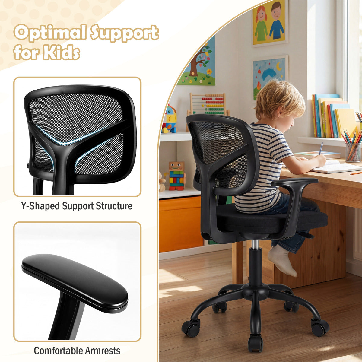 - Breathable mesh backrest prevents heat buildup during long study sessions