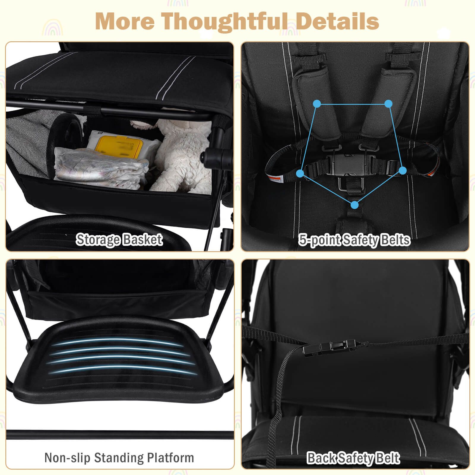 Make family outings effortless with this feature-packed double stroller. Its thoughtful design and premium construction ensure years of reliable use. Order your Foldable Double Stroller today and experience the convenience of hassle-free travel with your little ones!