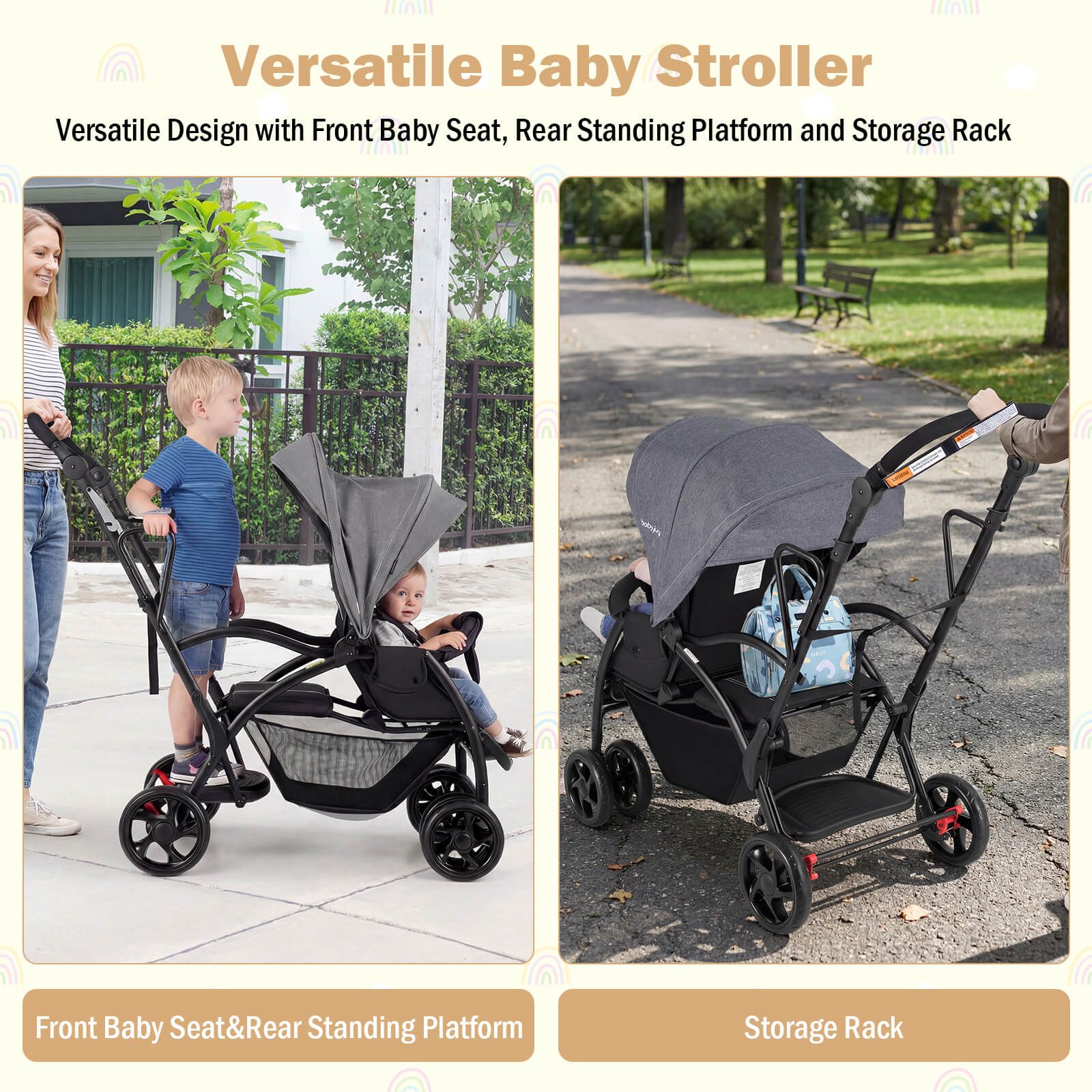 Grey Double Stroller | Sit Stand 2-in-1 Adjustable Handlebar