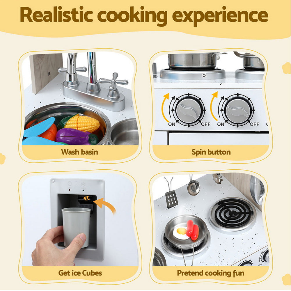 Let your little chef enjoy hours of imaginative play with this realistic pretend kitchen set! Featuring a pretend clock, cute phone, and ice maker, it provides a realistic cooking experience that encourages creativity and role-play. With multiple functions and ample storage space, all accessories can be neatly organized, making cleanup simple. The set is easy to assemble and built to last. Certified with EN71 European toy safety standards, it's recommended for ages 3+, and adult supervision is always advised. Perfect for sparking fun and learning in the kitchen!