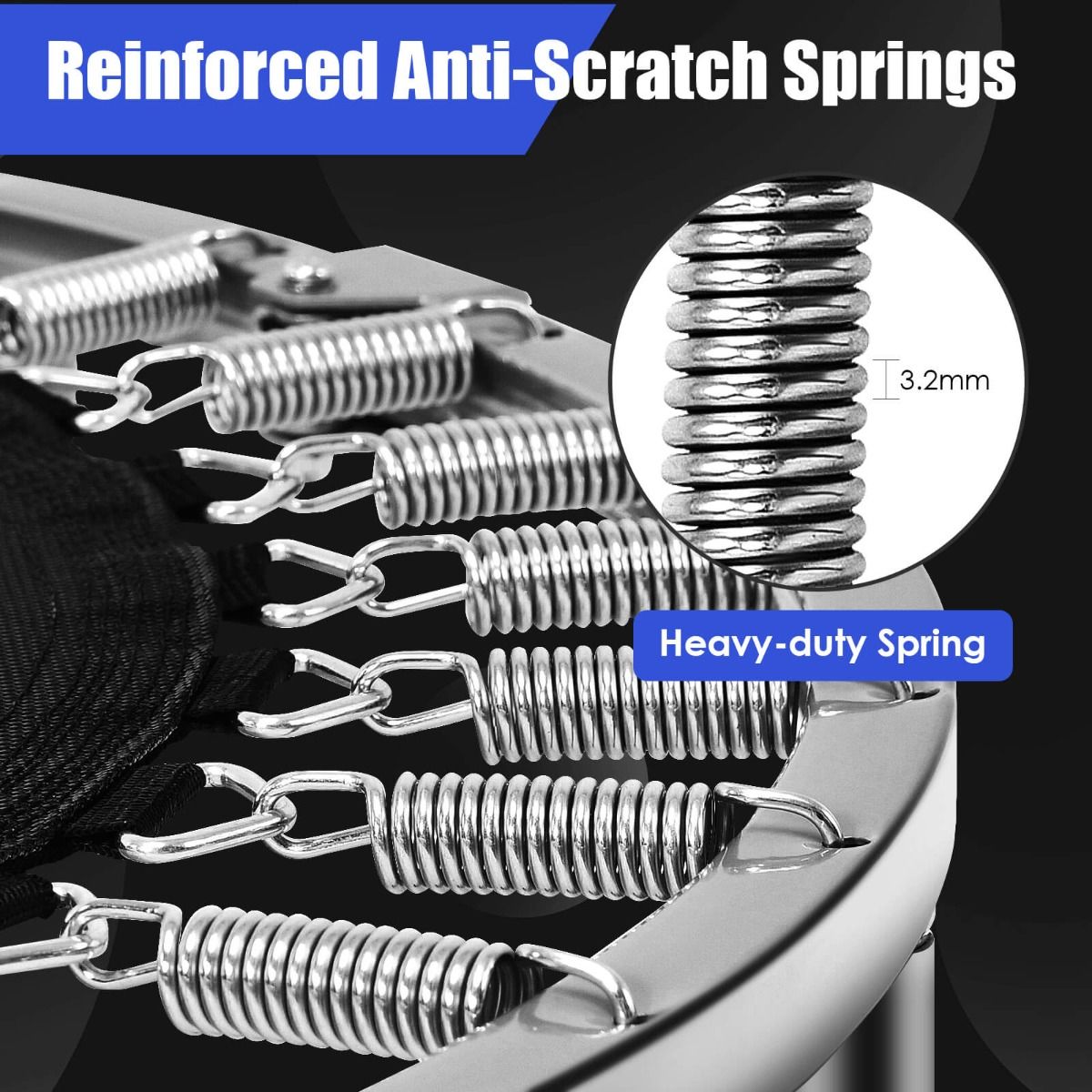 - Materials: Steel frame, high-tension springs, safety cover