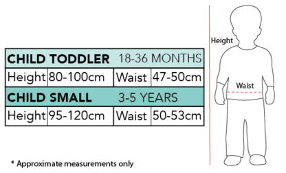 Available sizes: Small (ages 3-4), Medium (ages 5-6), Large (ages 7-8)