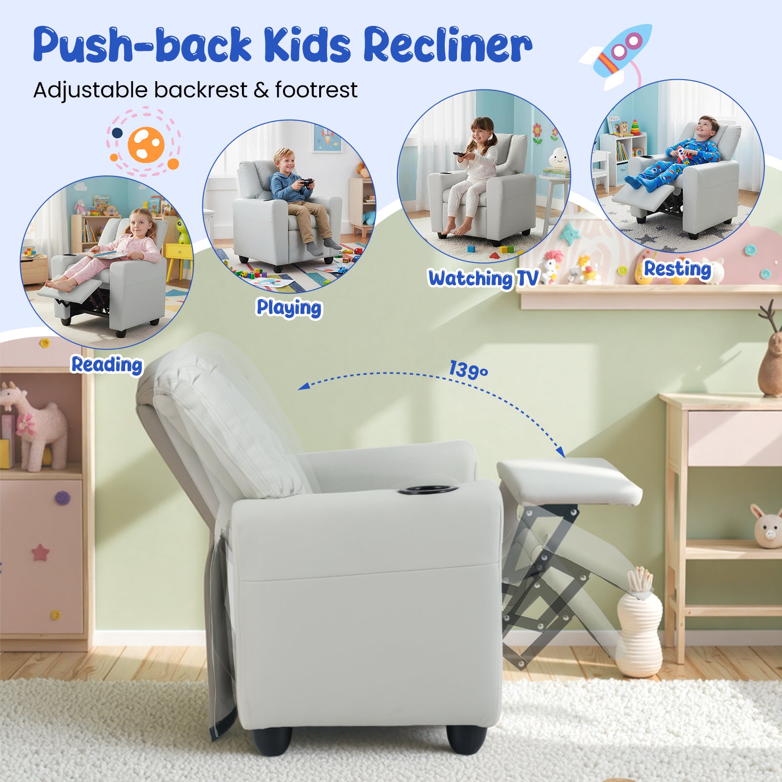 Grey Velvet Kids Recliner | Push Back Sofa with Footrest