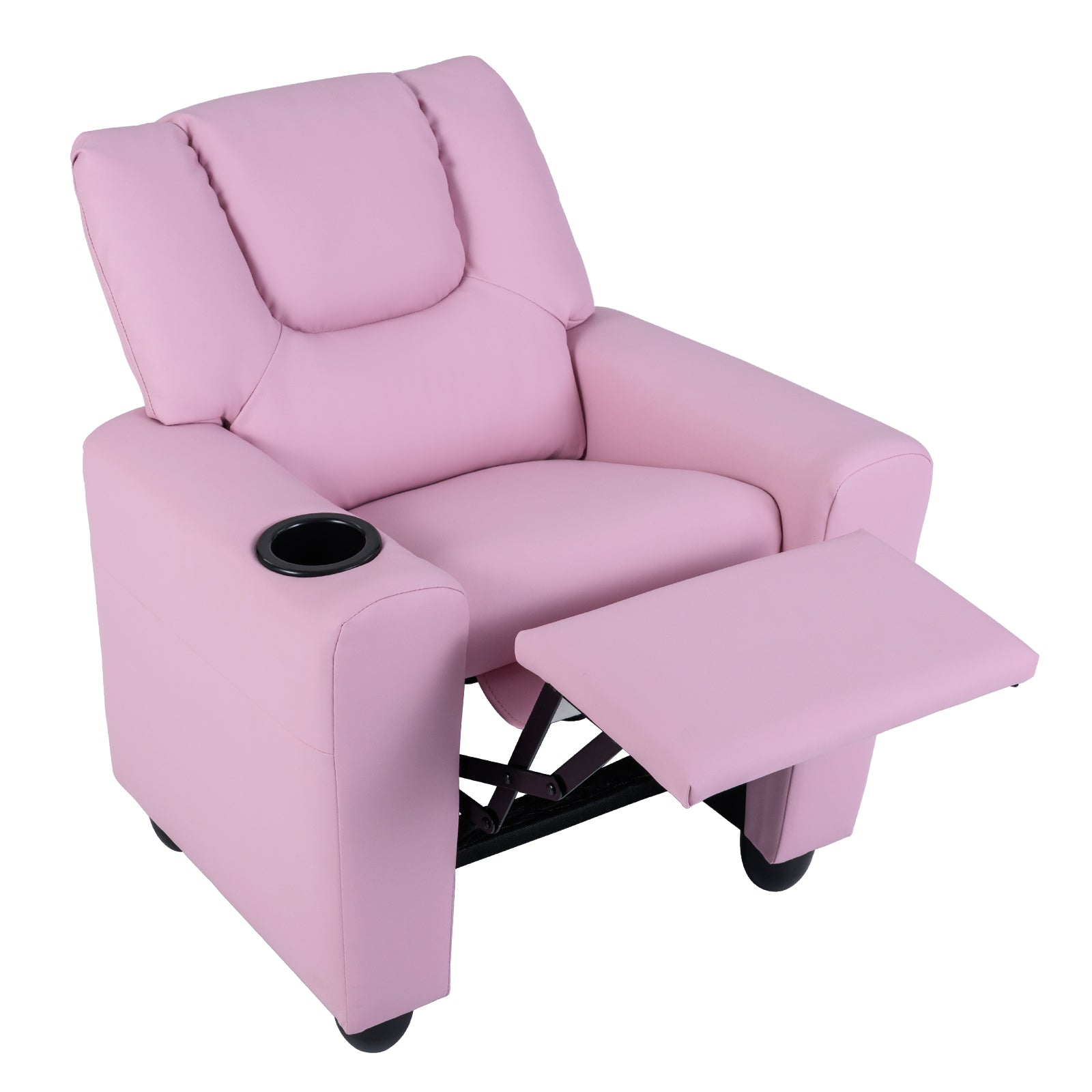 Pink Velvet Kids Recliner | Push Back Toddler Sofa with Cup